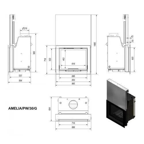 Печь KRATKI Камінна топка NBC680280 (бічне відкриття)