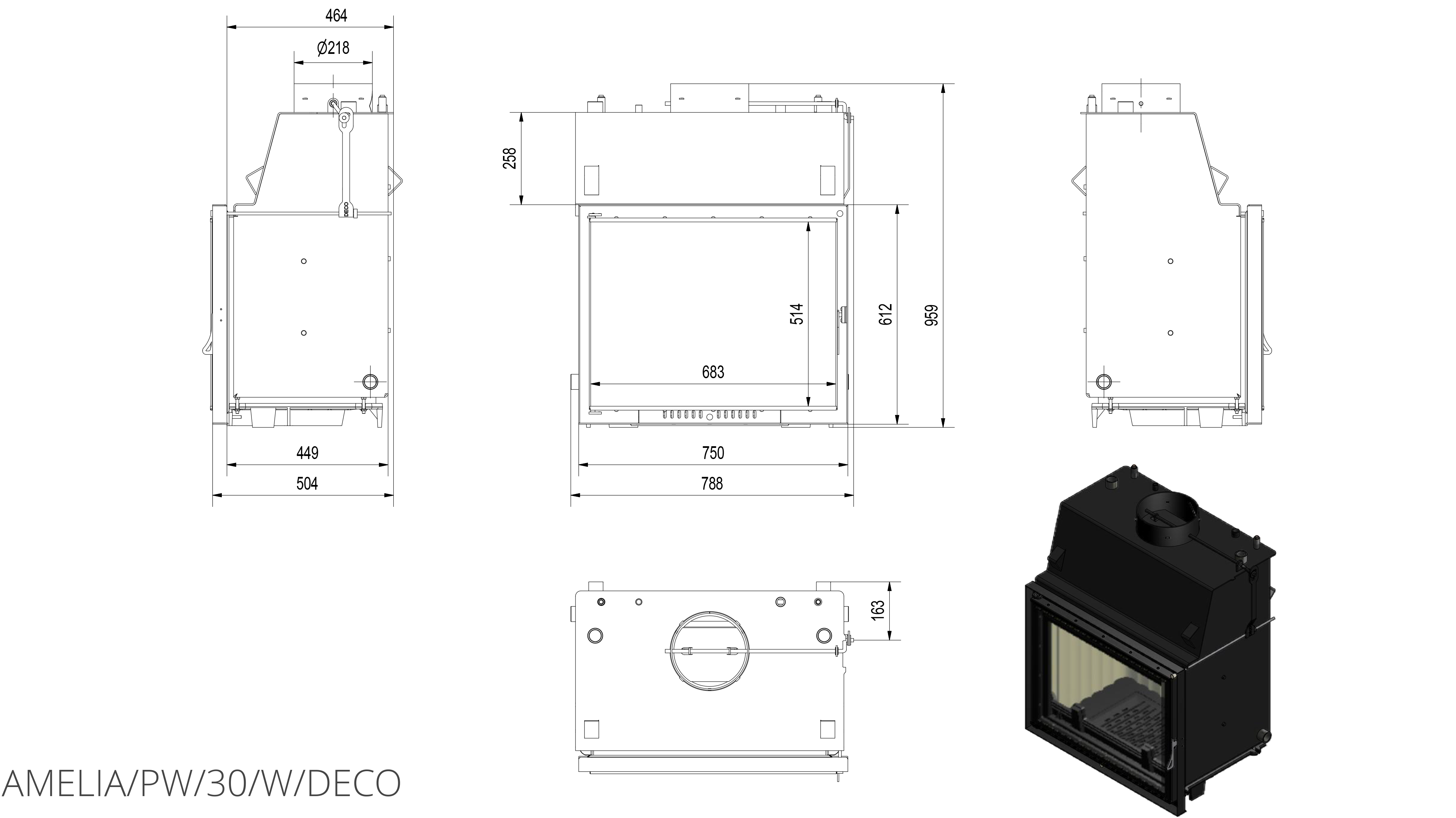 Печь KRATKI Камінна топка NBC680280 (бічне відкриття)