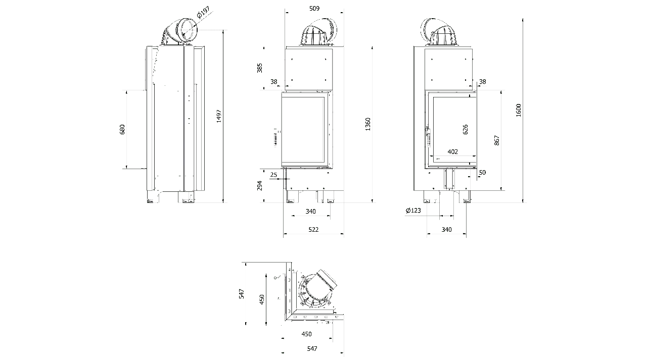 Печь KRATKI Камінна топка NBC680280 (бічне відкриття)