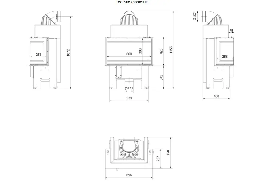 Печь KRATKI Камінна топка NBC680280 (бічне відкриття)