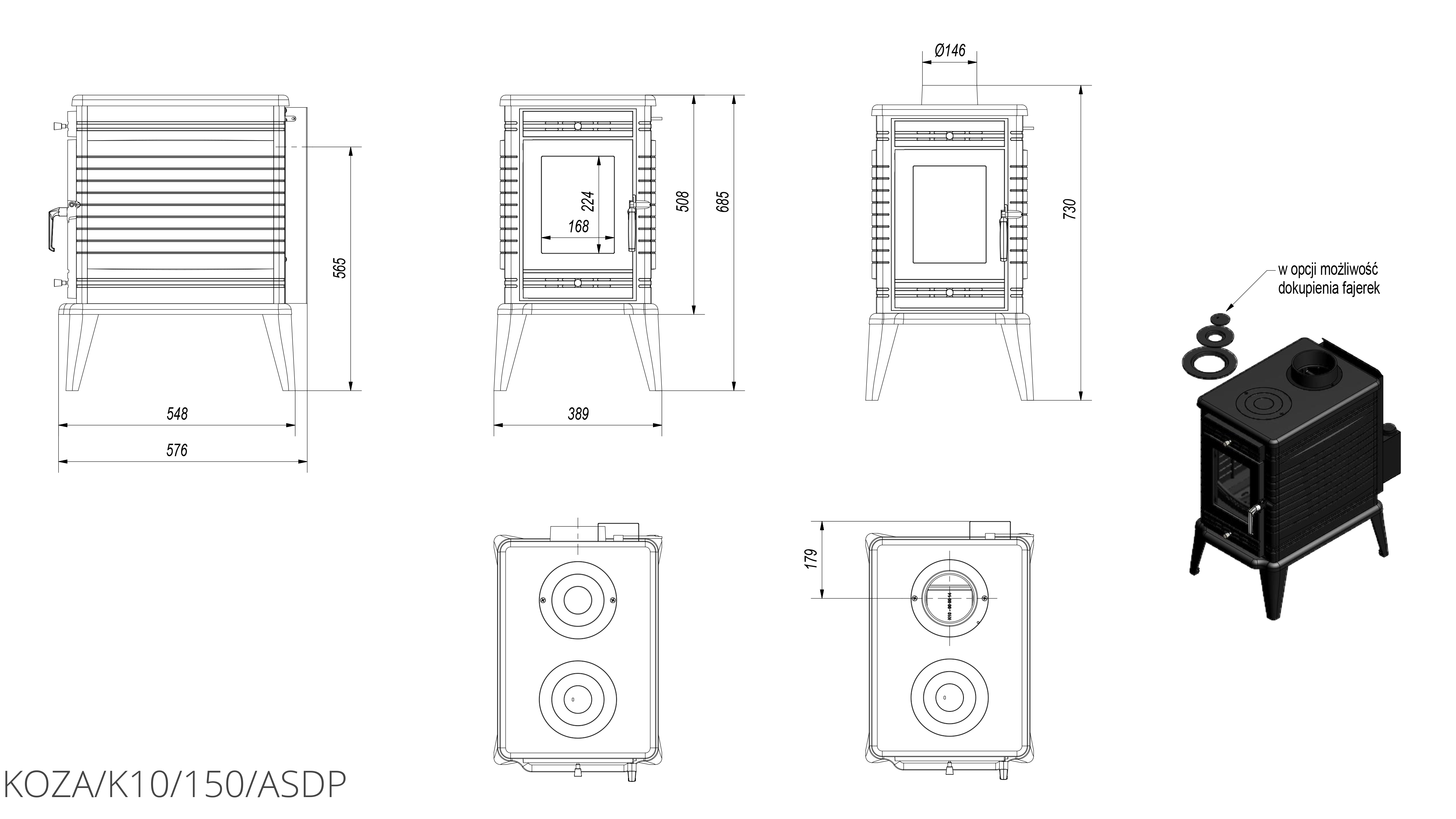 Піч вільностояча KOZA K10 повітряна з автоматичним регулюванням