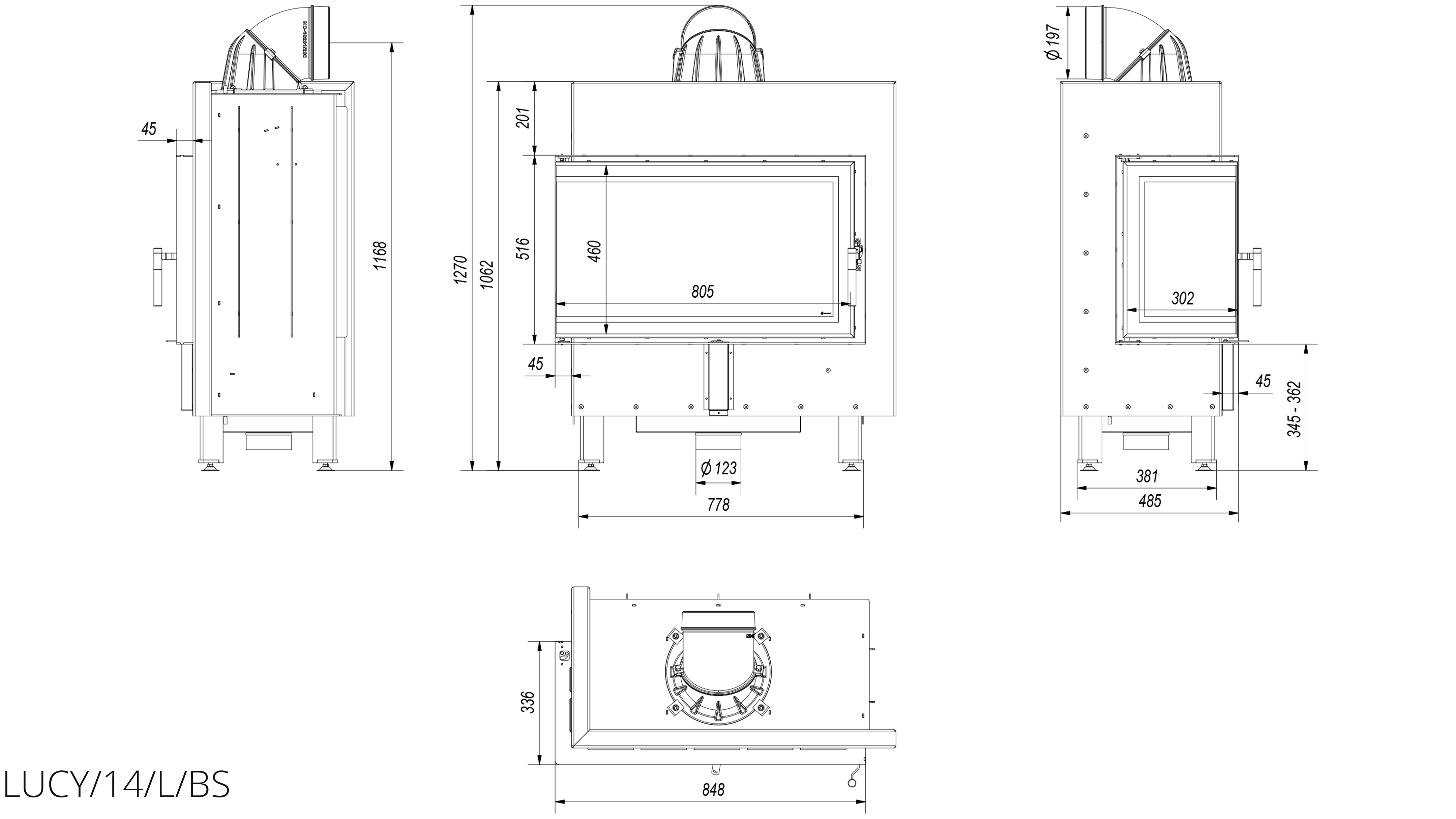 Печь KRATKI Камінна топка NBC680280 (бічне відкриття)