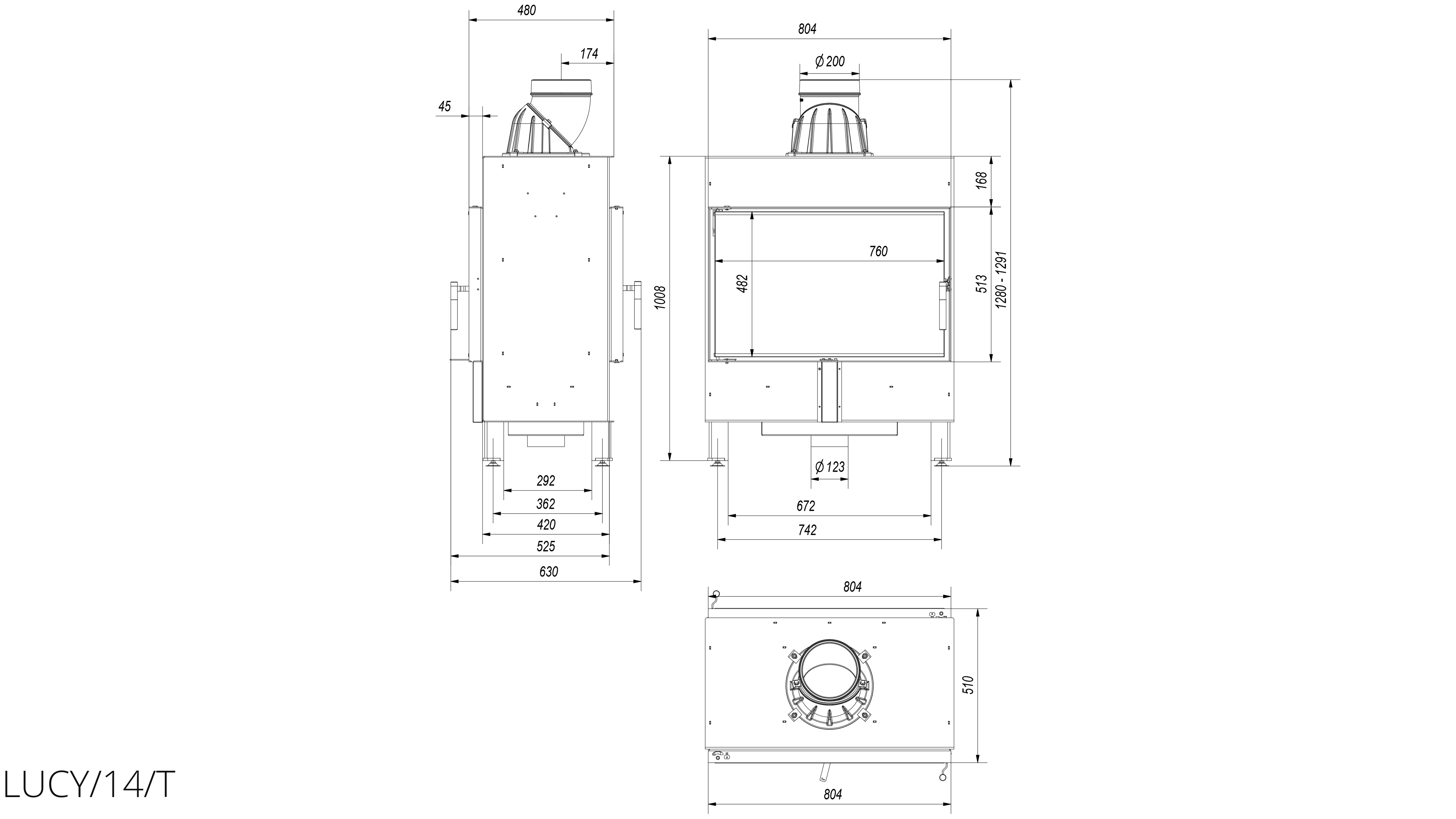 Печь KRATKI Камінна топка NBC680280 (бічне відкриття)