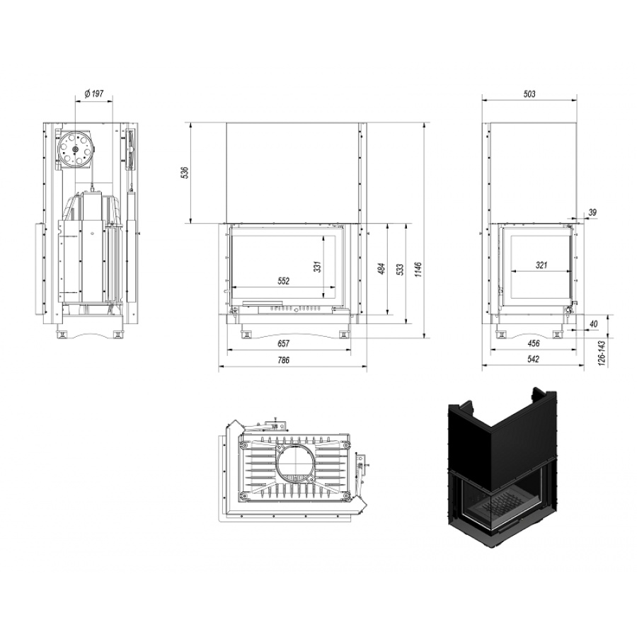 Печь KRATKI Камінна топка NBC680280 (бічне відкриття)