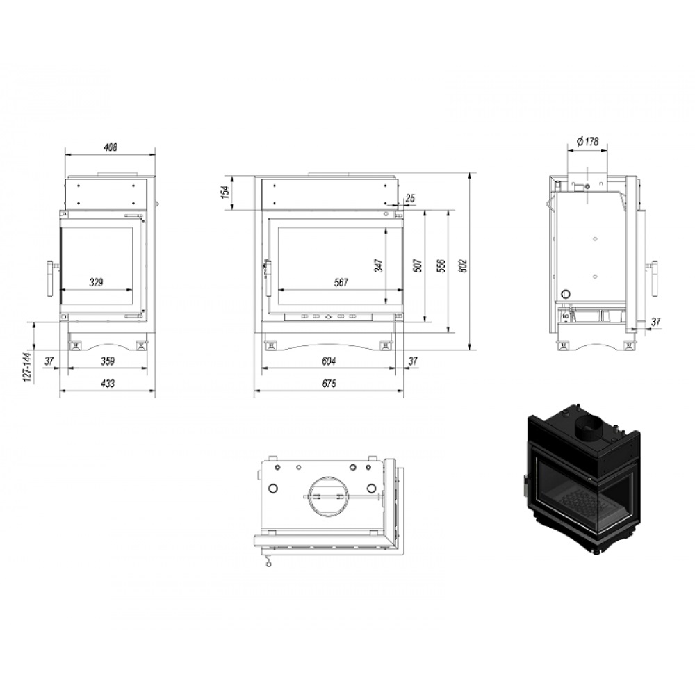Печь KRATKI Камінна топка NBC680280 (бічне відкриття)