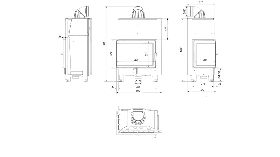 Печь KRATKI Камінна топка NBC680280 (бічне відкриття)