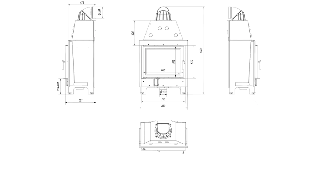 Печь KRATKI Камінна топка NBC680280 (бічне відкриття)