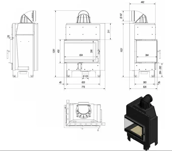 Печь KRATKI Камінна топка NBC680280 (бічне відкриття)