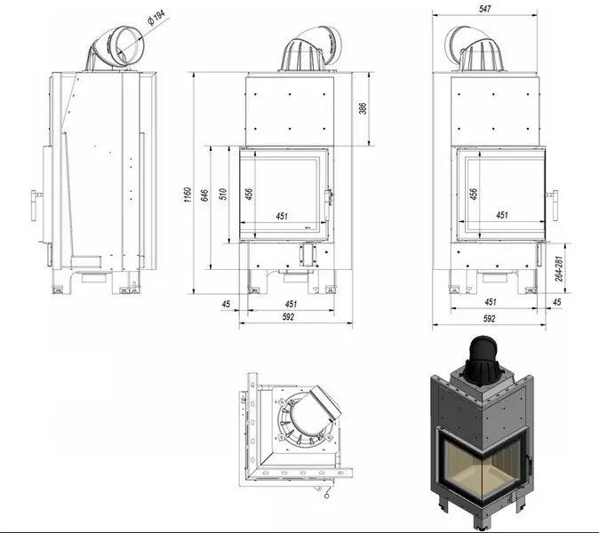 Печь KRATKI Камінна топка NBC680280 (бічне відкриття)