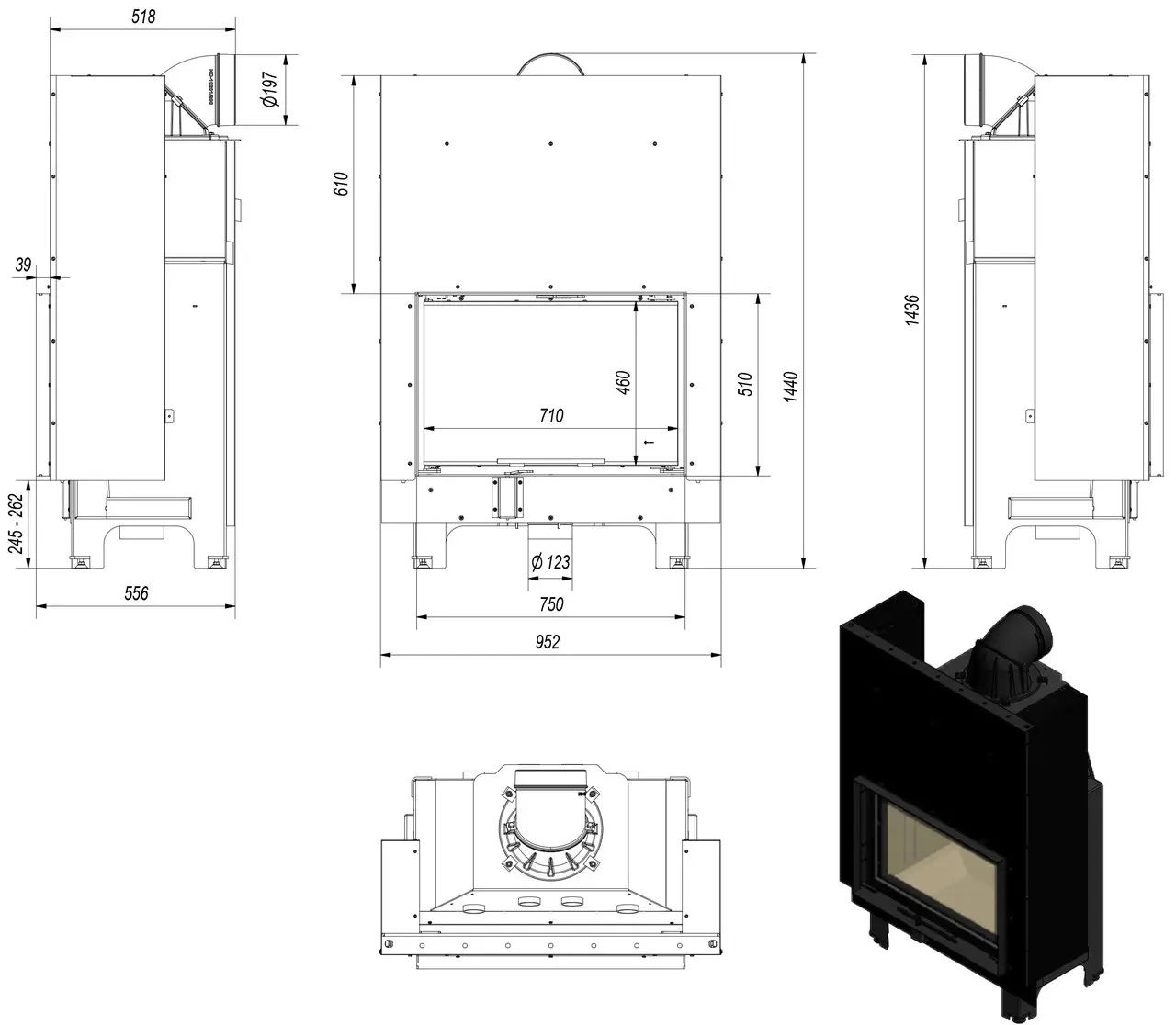 Печь KRATKI Камінна топка NBC680280 (бічне відкриття)