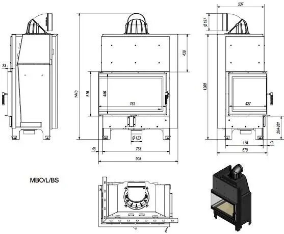 Печь KRATKI Камінна топка NBC680280 (бічне відкриття)