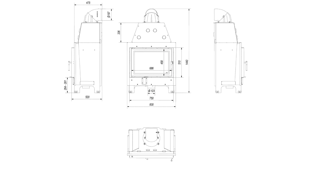 Печь KRATKI Камінна топка NBC680280 (бічне відкриття)