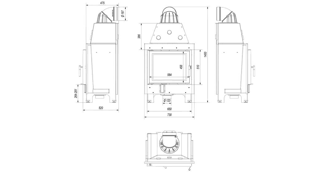 Печь KRATKI Камінна топка NBC680280 (бічне відкриття)