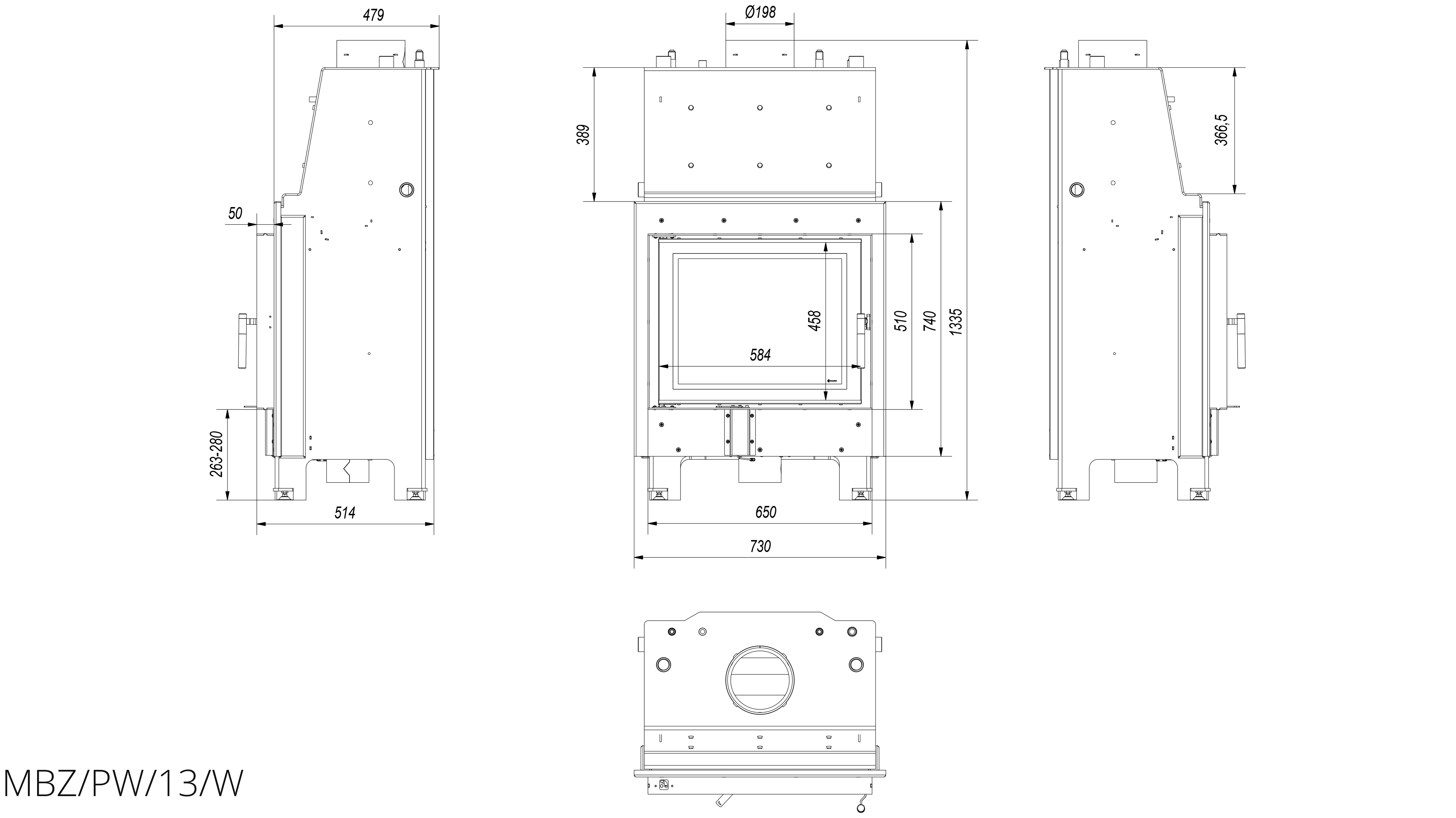 Печь KRATKI Камінна топка NBC680280 (бічне відкриття)