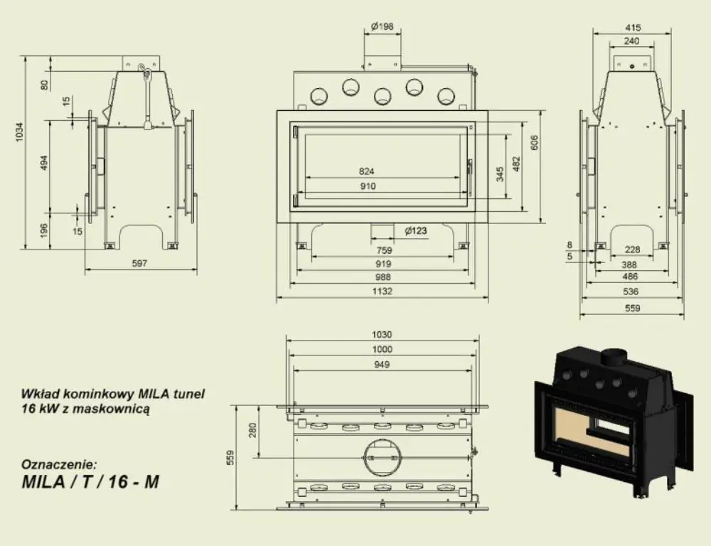 Каминная топка MILA T 16 тунельна