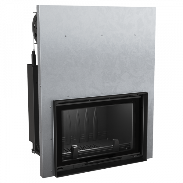 Дверцята топки працюють у системі lift up - скляна панель піднімається догори. Ця система була збудована, опираючись на противагу - два блоки (по обидвох сторонах дверцят) зі сталевою рейкою працюють у напрямних на двох несучих роликах, завдяки чому вага дверцят рівномірно розподіляється. Вони рухаються вздовж на вогнетривких роликах, встановлених у дверній рамі, що гарантує їх легке, тихе та безперебійне функціонування. Рух дверцят відбувається на відстані пару міліметрів від корпусу, що запобігає ушкодженню герметизації. Дверцята, що зачиняються, з великою силою занурюються у дверну раму, завдяки чому камера згоряння є повністю герметичною.