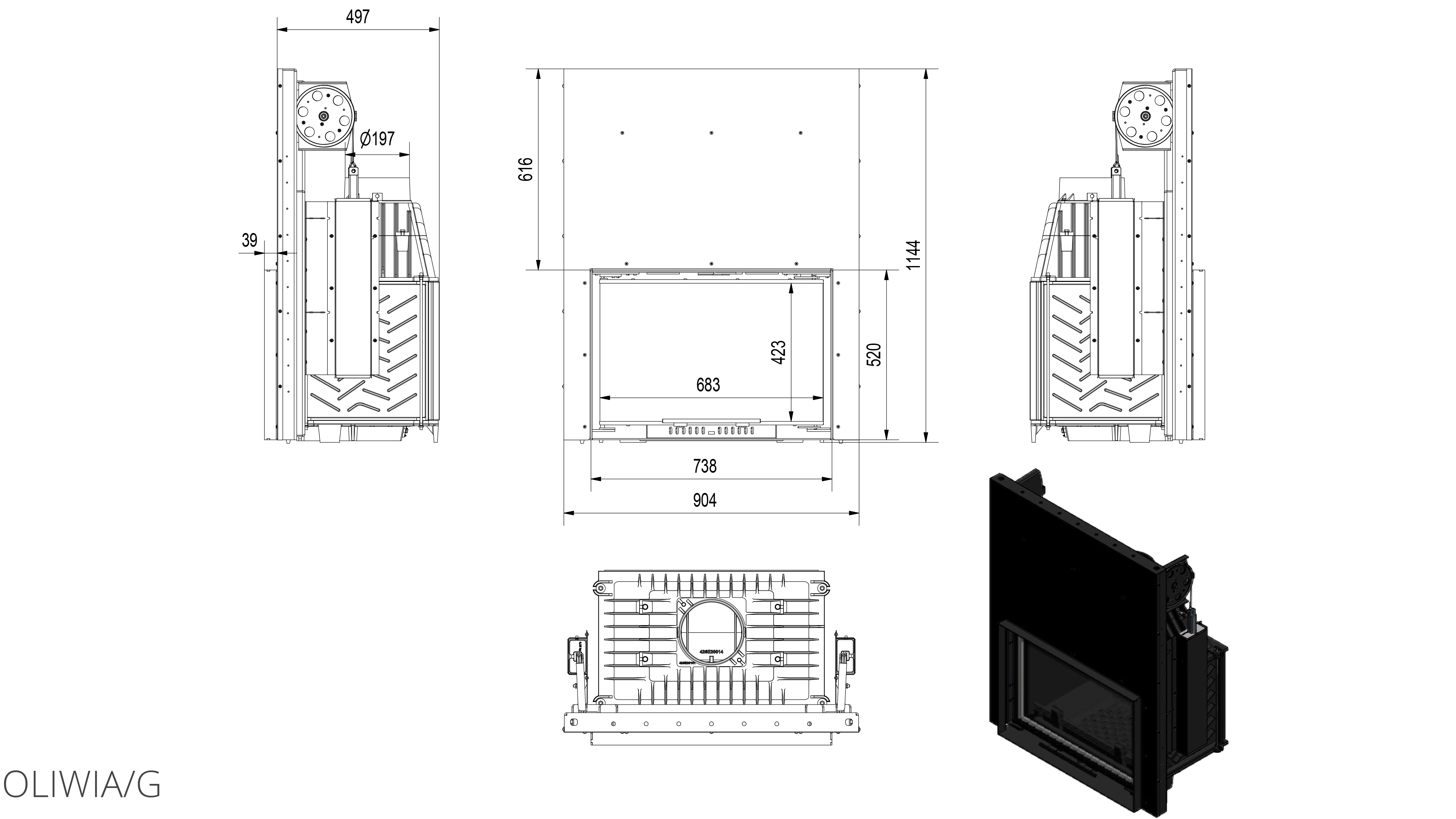 Печь KRATKI Камінна топка NBC680280 (бічне відкриття)