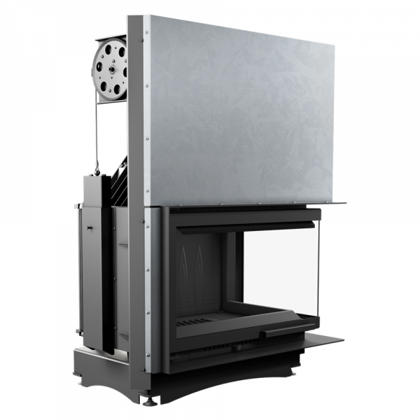 Подвійна система відчиняння дверцят догори (ГІЛЬЙОТИНА) і вбік. Дверцята, що піднімаються і опускаються, полегшують наповнення деревиною, а механізм, який уможливлює бічне відчиняння, дозволяє відчистити скло більш ефективно.