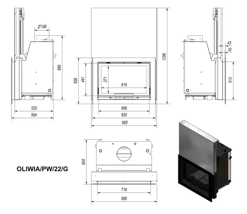 Печь KRATKI Камінна топка NBC680280 (бічне відкриття)