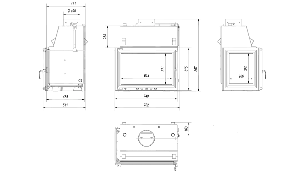 Печь KRATKI Камінна топка NBC680280 (бічне відкриття)