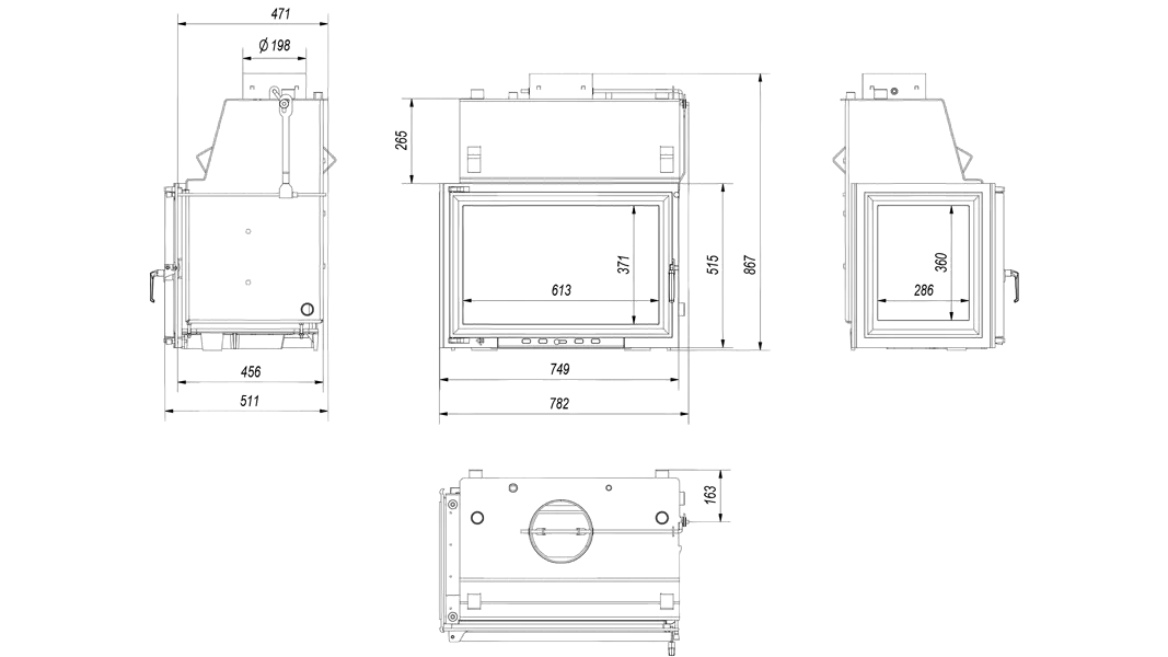 Печь KRATKI Камінна топка NBC680280 (бічне відкриття)