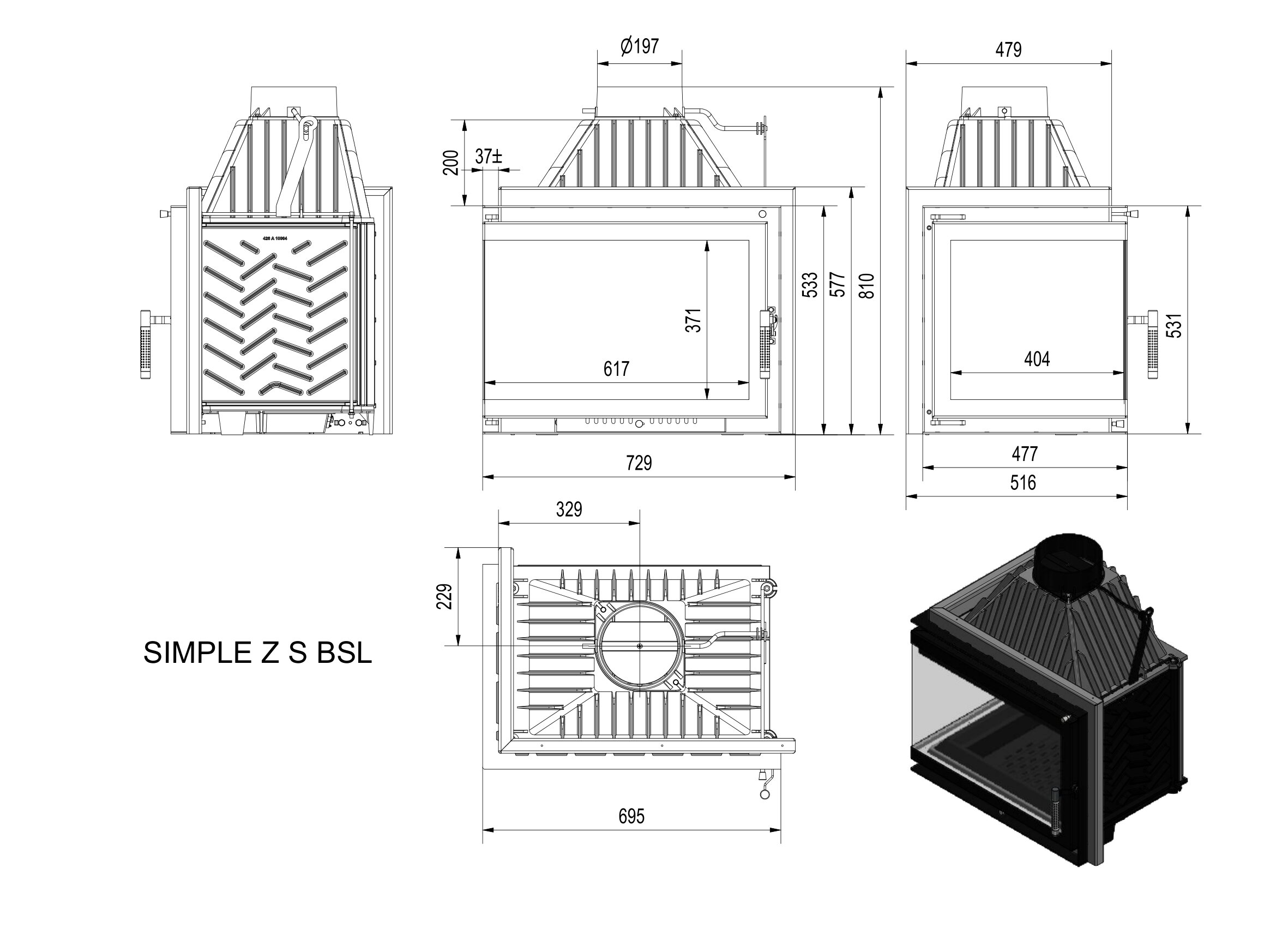 Печь KRATKI Камінна топка NBC680280 (бічне відкриття)