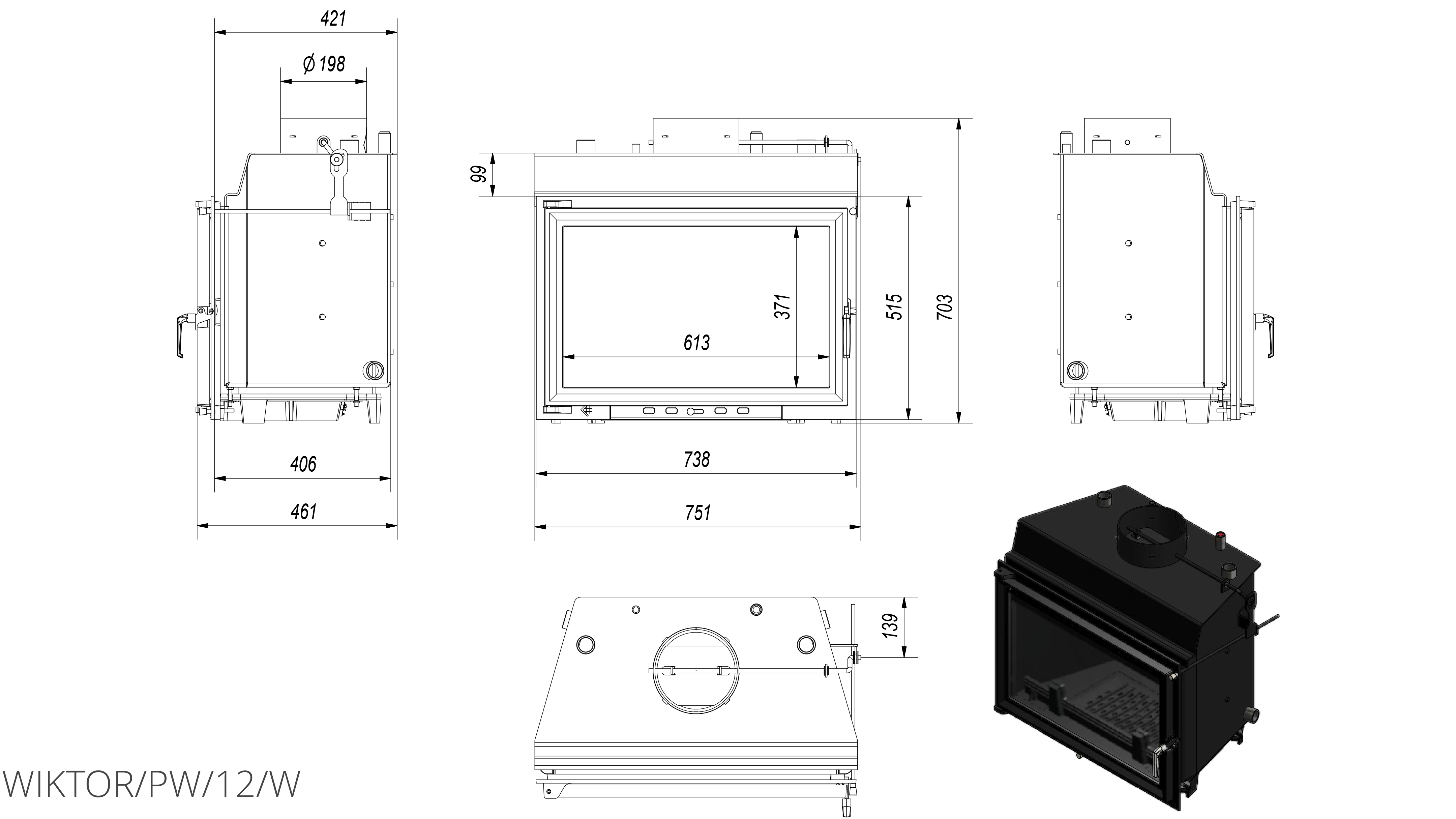 Печь KRATKI Камінна топка NBC680280 (бічне відкриття)