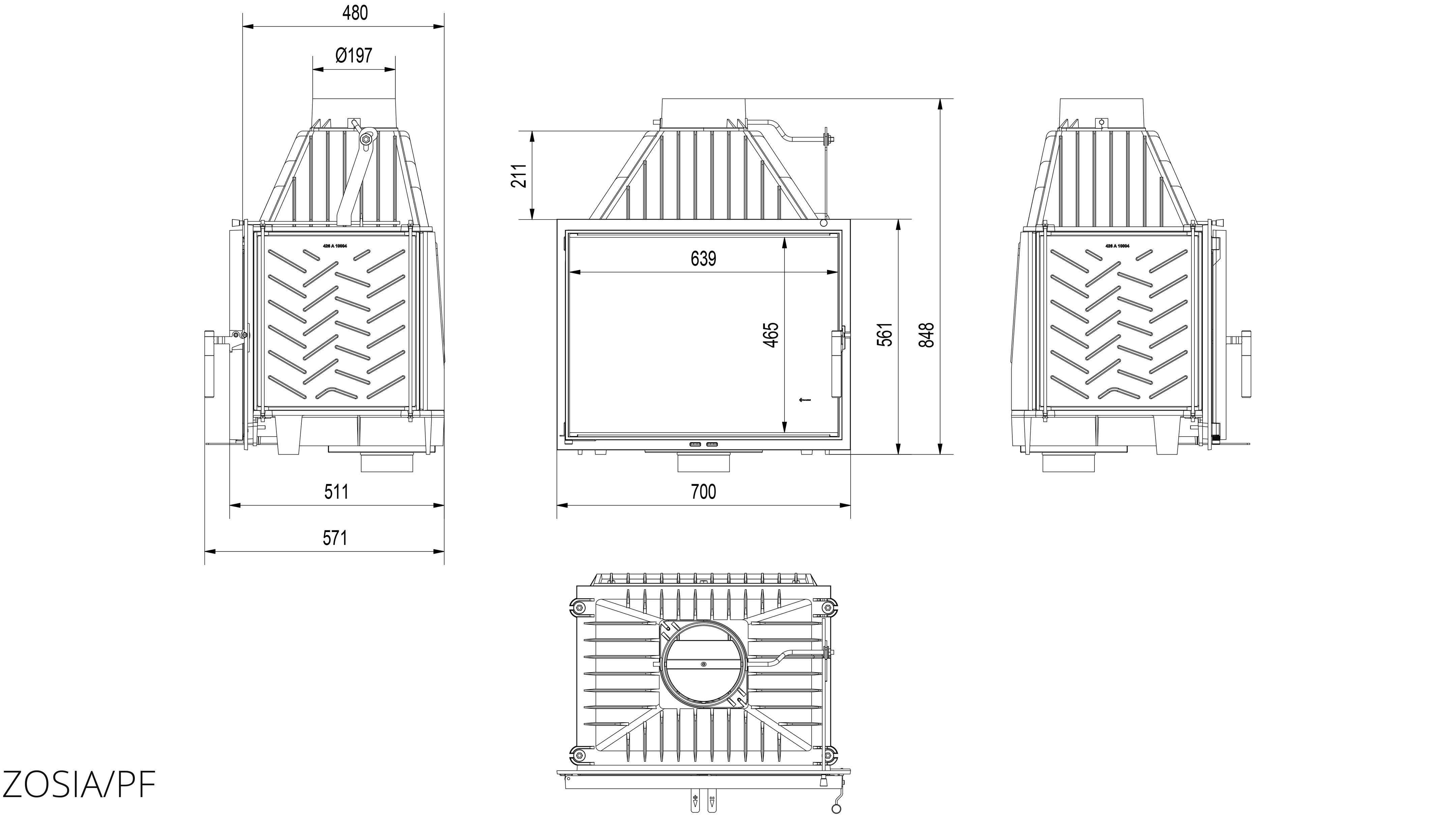 Печь KRATKI Камінна топка NBC680280 (бічне відкриття)