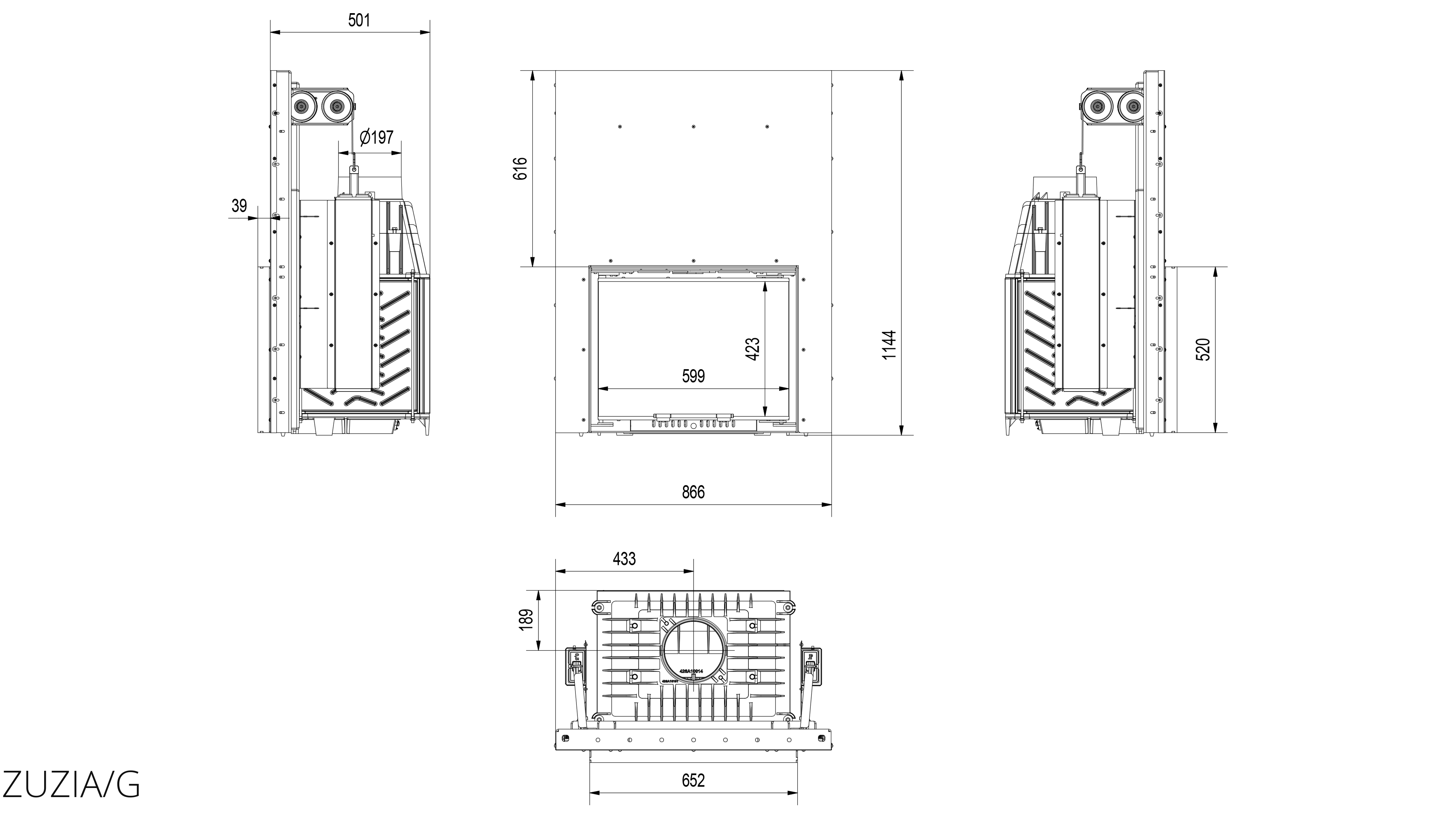 Печь KRATKI Камінна топка NBC680280 (бічне відкриття)