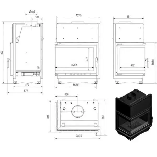 Печь KRATKI Камінна топка NBC680280 (бічне відкриття)
