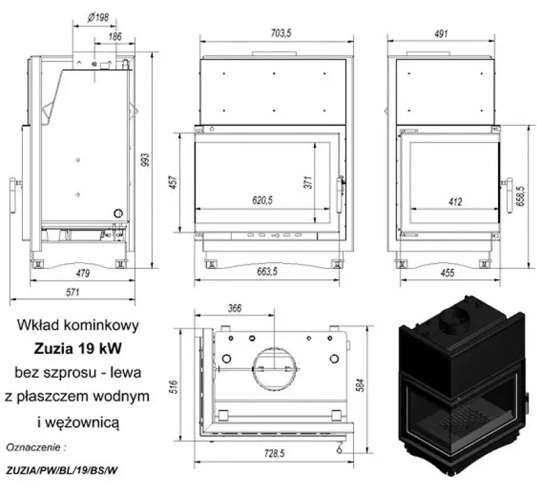 Печь KRATKI Камінна топка NBC680280 (бічне відкриття)