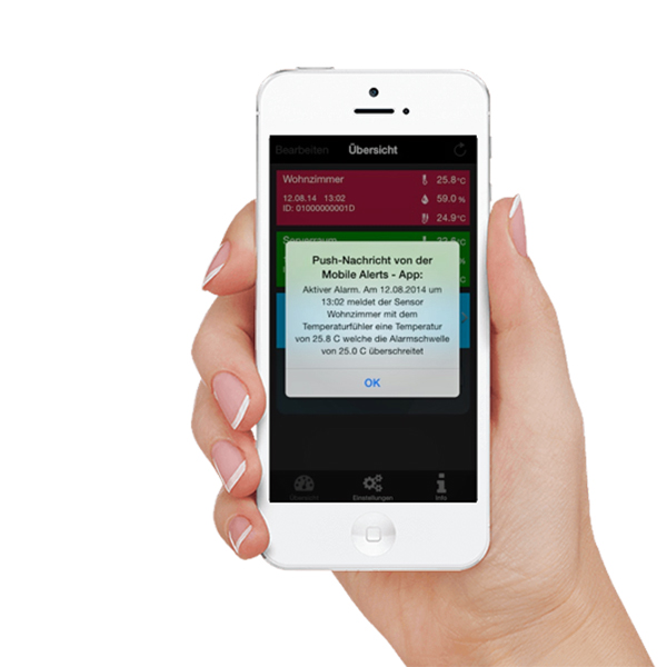 - Передача через интернет на Ваш смартфон данных о внутренней и внешней температуре и влажности с помощью технологии Mobile-Alerts