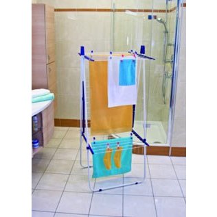 Сушилка CONDOR TOWER идеально подходит для помещений с ограниченной площадью (ванная, балкон и др.). Площадь опоры у сушилки 66х61 см. поэтому она точно подходит для установки в душевой кабине. На ножках имеются специальные пластиковые колпачки, благодаря которым они не поцарапают Ваш пол. Сушилка выполнена из нержавеющих материалов с само очищающимися струнами для белья. Сушилка очень легка в установке и занимает очень мало места в сложенном состоянии. Общая длина трех сушильных плоскостей сушилки CONDOR TOWER составляет 19м., что позволяет одновременно сушить до двух загрузок стиральной машины. Средний уровень можно откинуть и сушить длинные вещи.