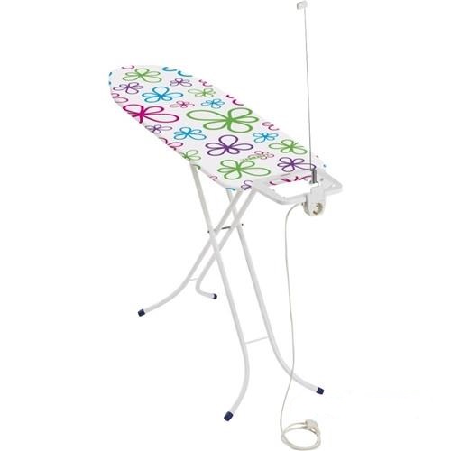Данная доска укомплектована фиксированной подставкой под утюг, держателем шнура, евророзеткой и удлинителем.