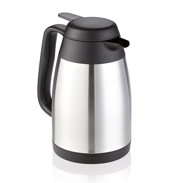 Вакуумный чайник-термос из нержавеющей стали, на 7 чашек. При помощи специальной клавиши на крышке термоса-чайника можно без труда наливать жидкость из чайника, не откручивая крышку.