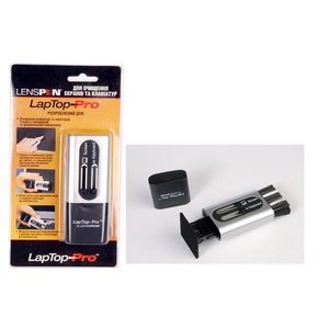 Объединенная ситема очистки монитора и клавиатуры. На одном конце есть очень мягкая замшевая подушечка со специальной сухой смесью для удаления грязи и отпечатков пальцев с экрана. На другом - две щеточки: одна для удаления пыли с экрана и другая для очистки между клавишами клавиатуры. Это устройство компактно и портативно, вы можете носить его с собой, и при необходимости очистить загрязненные участки.