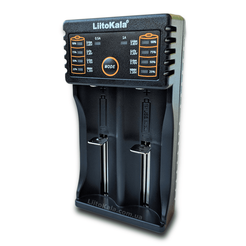 LiitoKala Lii-202 – универсальное 2-х канальное зарядное устройство с функцией Power Bank, которое совместимо практически со всеми видами цилиндрических аккумуляторов разного химического состава – NiCd, NiMH, Li-Ion, LiFePO4 и практически всех типоразмеров аккумуляторов АА, ААА, С (R14), A, SС, 14500, 16340, 18350, 18650, 21700, 20700, 26650 и другие.