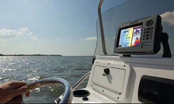 6. Усовершенствованный экран SolarMAX™ PLUS в отличии от предшественника SolarMAX™ имеет чуть более белое свечение экрана и гораздо лучше читается на солнце. Но при этом, как мне показалось, ночью он ослепляет тоже сильнее, притом, что переключение в ночной режим или снижение яркости подсветки помогают не значительно и детали на экране из-за малого уровня подсветки становятся неразличимы. Выход довольно прост – во-первых, установить монитор не прямо перед собой за рулем, а несколько в стороне. Во-вторых, крепление к лодке должно давать возможность развернуть экран, чтобы поток света шел в стороне, но при этом картинка экрана хорошо просматривалась с вашего рулевого места. Все это значительно добавит удобства при движении в темное время суток. Новый экран обеспечивает хорошую читаемость под углом. Для этого очень рекомендую использовать крепление фирмы RАМ Еще один плюс такой установки, в том, что можно разместить экран ближе к лицу, что даст возможность хорошо видеть мелкие детали изображения и управлять клавишами не наклоняясь вперед.