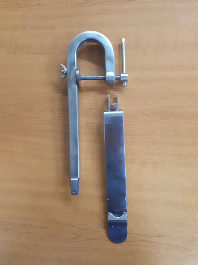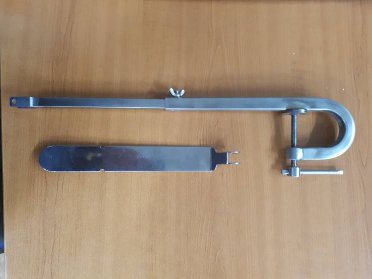 Струбцина(кронштейн) для датчика эхолота . Струбцина крепится к транцу лодки. Струбцина изготовлена из профилированной трубы нержавеющей стали, что придает жесткость конструкции. Длинна струбцины регулируется от 35см до 53см. Отличное качество!!! Устанавливается под лодку.