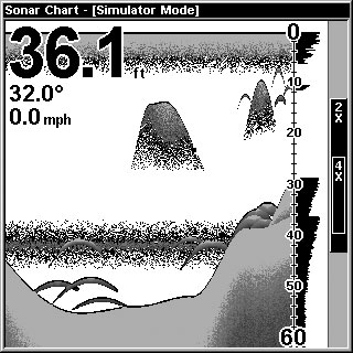При включении этой функции можно выводить на экран увеличенное изображение интересующего слоя воды. Это позволяет, например, более детально рассмотреть донную поверхность, в складках которой может скрываться рыба.