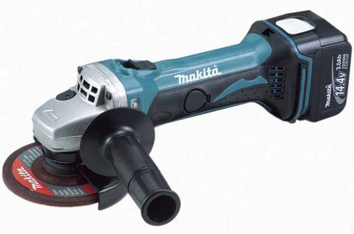 Углошлифовальная машина Makita BGA450RFE – мощный аккумуляторный инструмент, предназначенный для выполнения отрезных и шлифовальных работ любой сложности. Шлифмашина рассчитана на работу от 14,4В аккумуляторов (в комплекте изделия идут два аккумулятора Li-Ion 3,0Ач), что позволяет добиться высокой степени автономности. К преимуществам данного инструмента стоит отнести высокую скорость вращения диска, которая составляет 10000 об/мин, а также достаточно высокий крутящий момент.