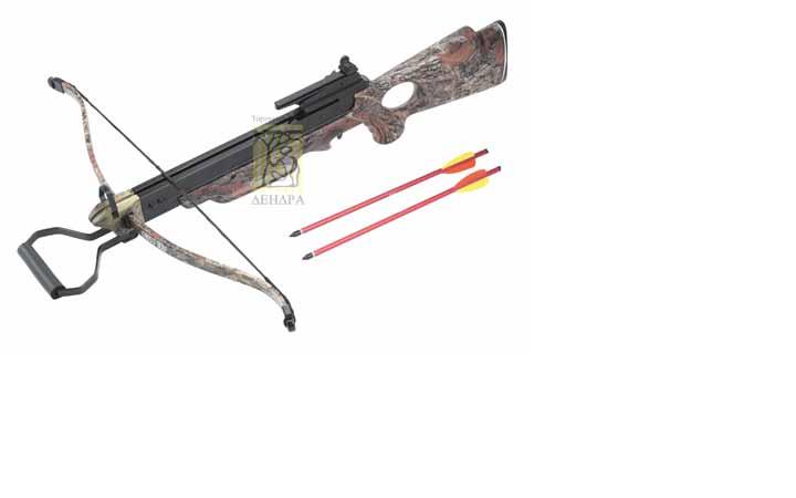 Арбалет винтовочного типа. В комплекте: 2 алюминиевые стрелы, 1 плечи, 1 титива