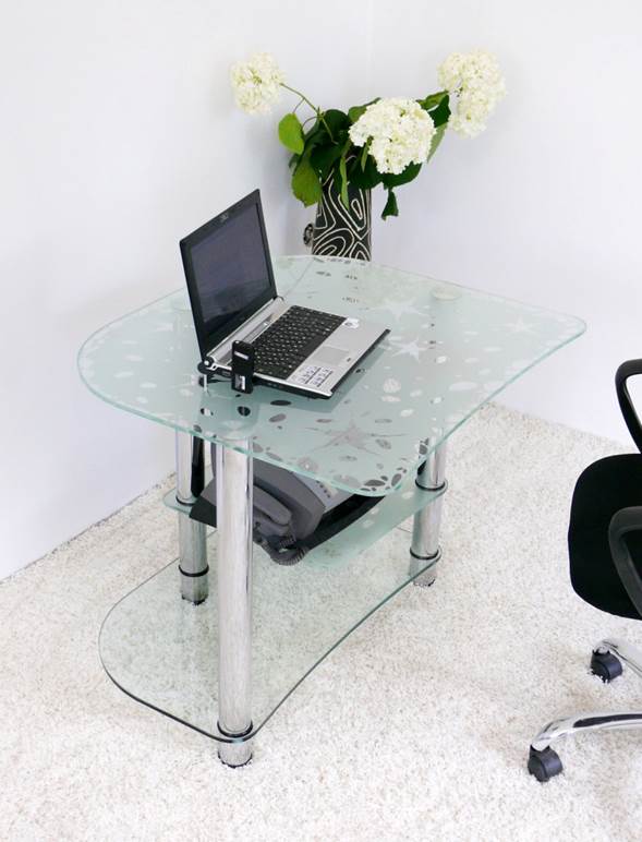 Стекло является экологически чистым материалом, а разнообразие технологий обработки стекла позволяет изготовлять компактные и оригинальные модели компьютерных столов.