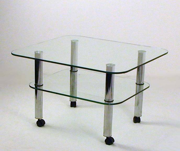 Стол журнальный Maxi lt r 730/650 Цвет-прозрачный Размер столешни - 730/650 Размер полки- 650/550 Высота - 470 мм Опоры хромированные d50мм