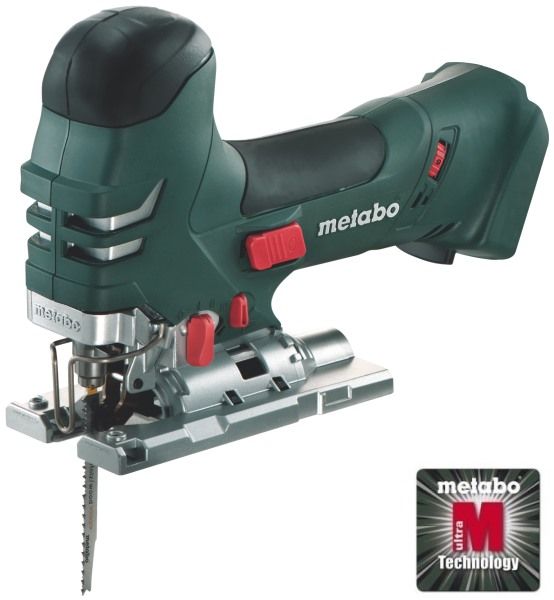 Мощный двигатель, отличный редуктор, система регулировки оборотов и поддержания оборотов под нагрузкой, безключевые система смены пилочек Metabo Quick и угла наклона подошвы.