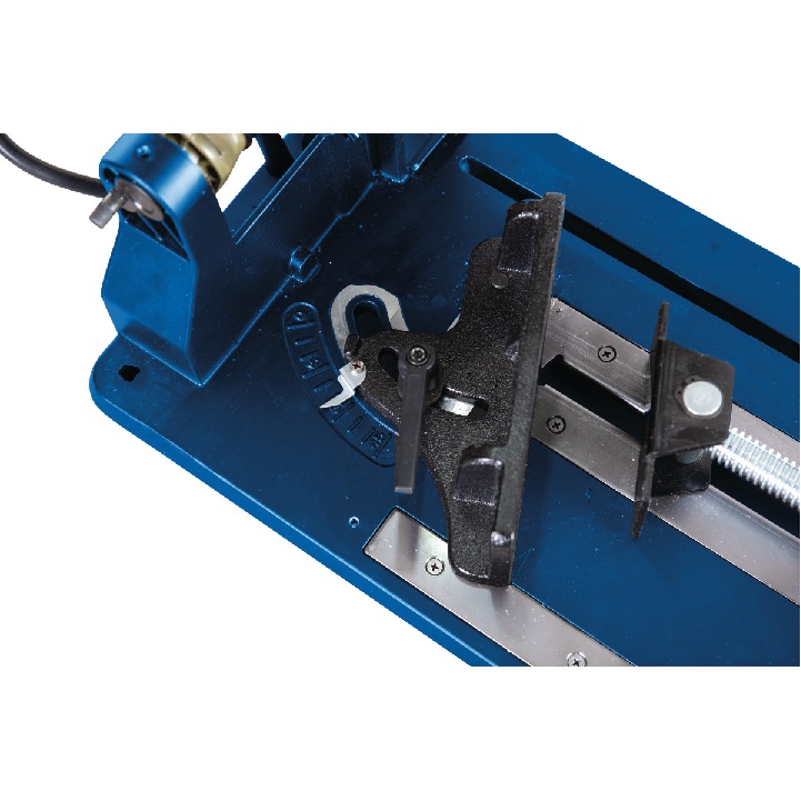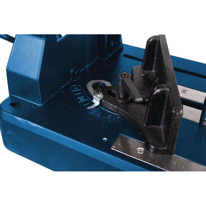 Рабочий стол монтажной пилы по металлу оснащен тисками с угловой шкалой и быстрой регулировкой угла зажима.
