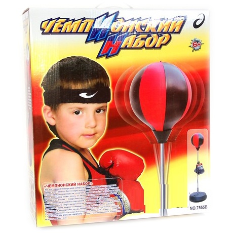 Любому мальчику понравится представленный напольный комплект для бокса под названием «Чемпионский набор». Его изделия изготовлены из искусственной кожи. Они подойдут для подарка ребенку в возрасте от трех лет.