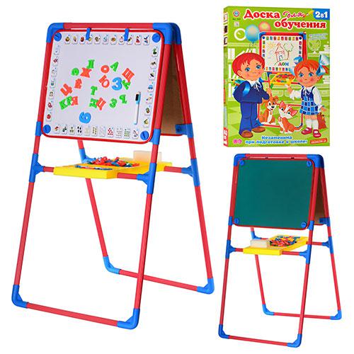 Комплектация: Магнитные буквы и цифры, мел, фломастер, прищепки для крепления бумаг