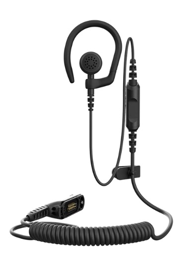 - Однопроводная гарнитура со съемным ушным крючком, встроенным микрофоном и функцией «Нажми и говори» (PTT).