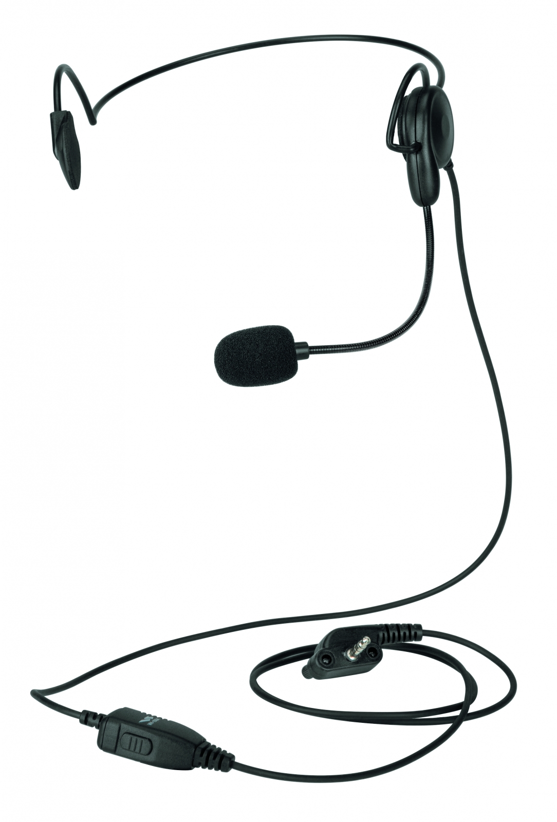 Гарнитура с оголовьем через затылок и микрофоном на штанге